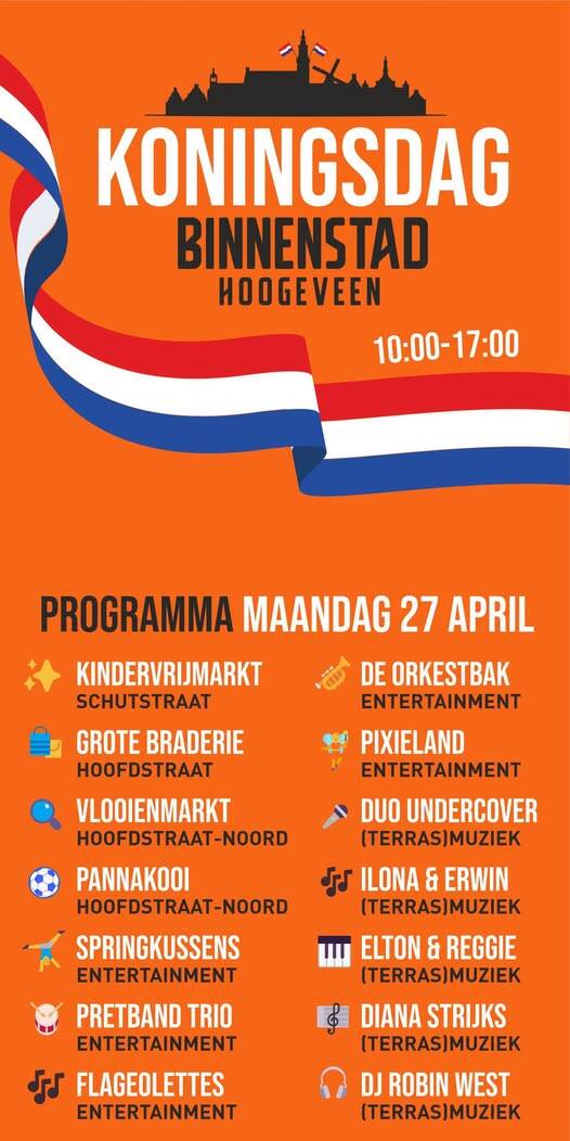 Maandag 27 april wordt de binnenstad van Hoogeveen omgetoverd tot één groot feest!