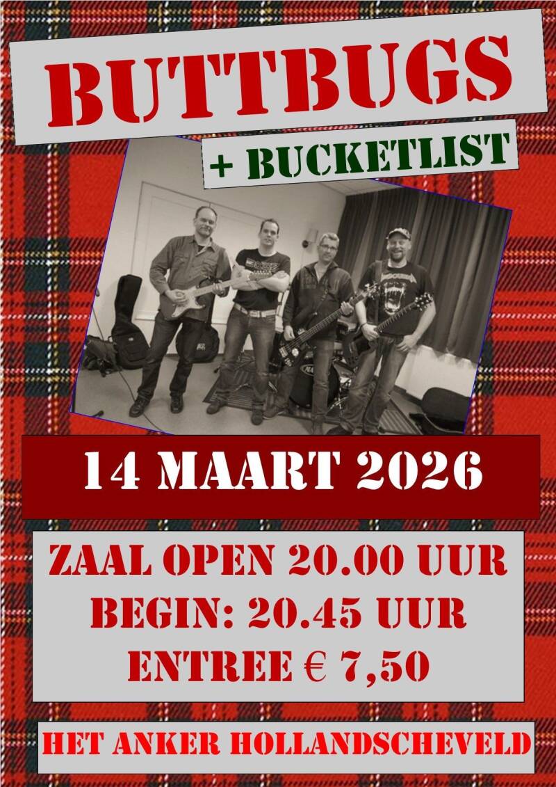 Buttbugs en Bucketlist in "T Anker Hollandscheveld 14 maart