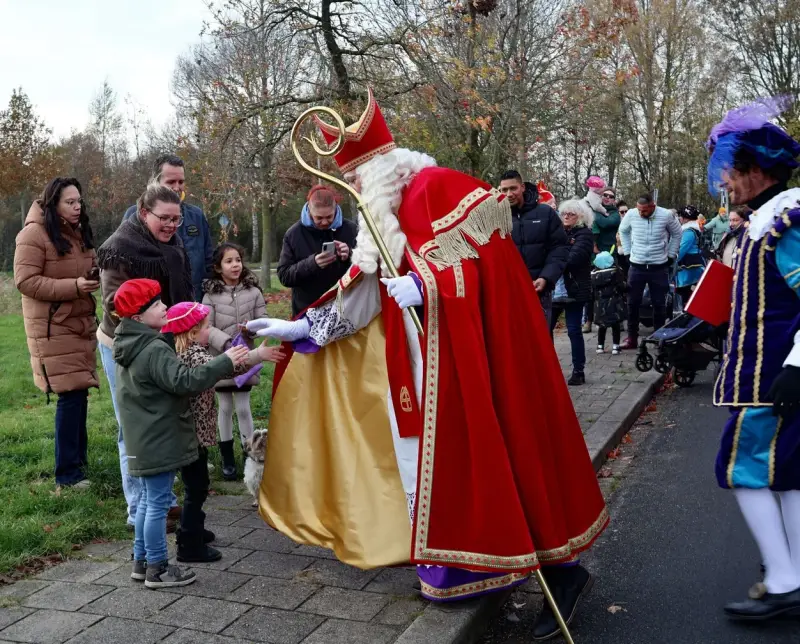 Hoogeveen, 23 -11-2025. Gistermiddag bracht Sinterklaas samen met zijn Pieten een bezoek aan Krakeel. De kinderen, samen met hun ouders en opa’s en oma’s, stonden hem al op te wachten bij de Edisonbrug. Daar waren enkele Pieten al aanwezig om de kinderen warm te houden met gezellige liedjes en dans.