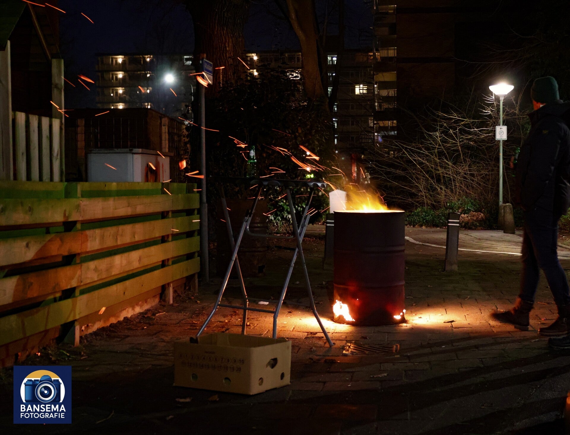 Overal zie je vuurtonnen staan. Sommige staan eenzaam te branden, bij andere verzamelt zich een groep mensen.