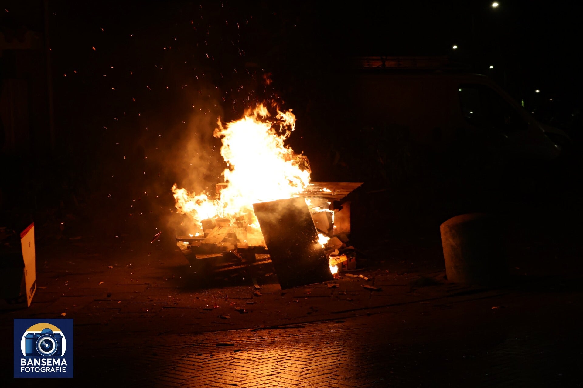 En dan niet te vergeten de vreugdevuren in de straten, waar grote containers vol hout en pallets worden aangevoerd om te branden.