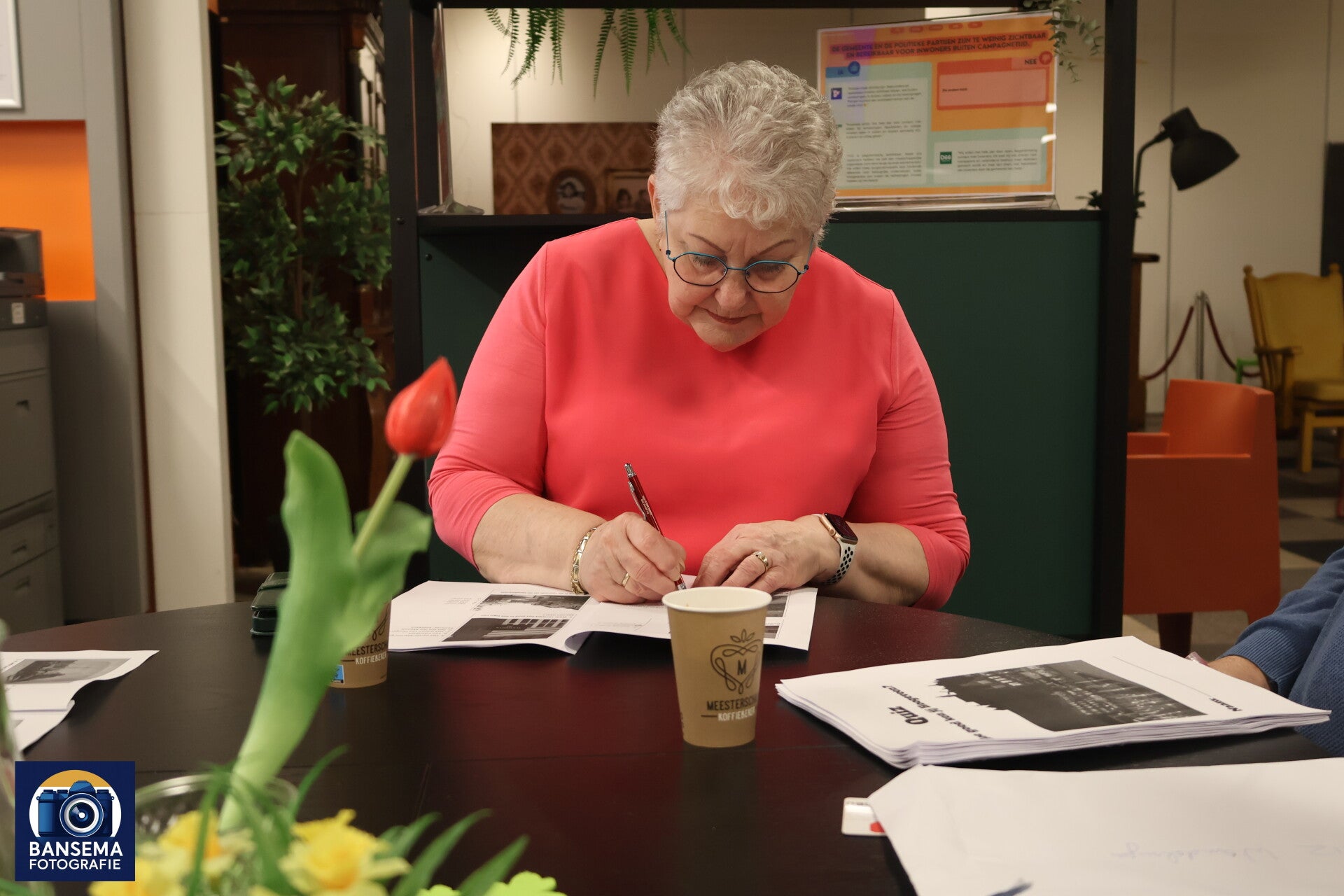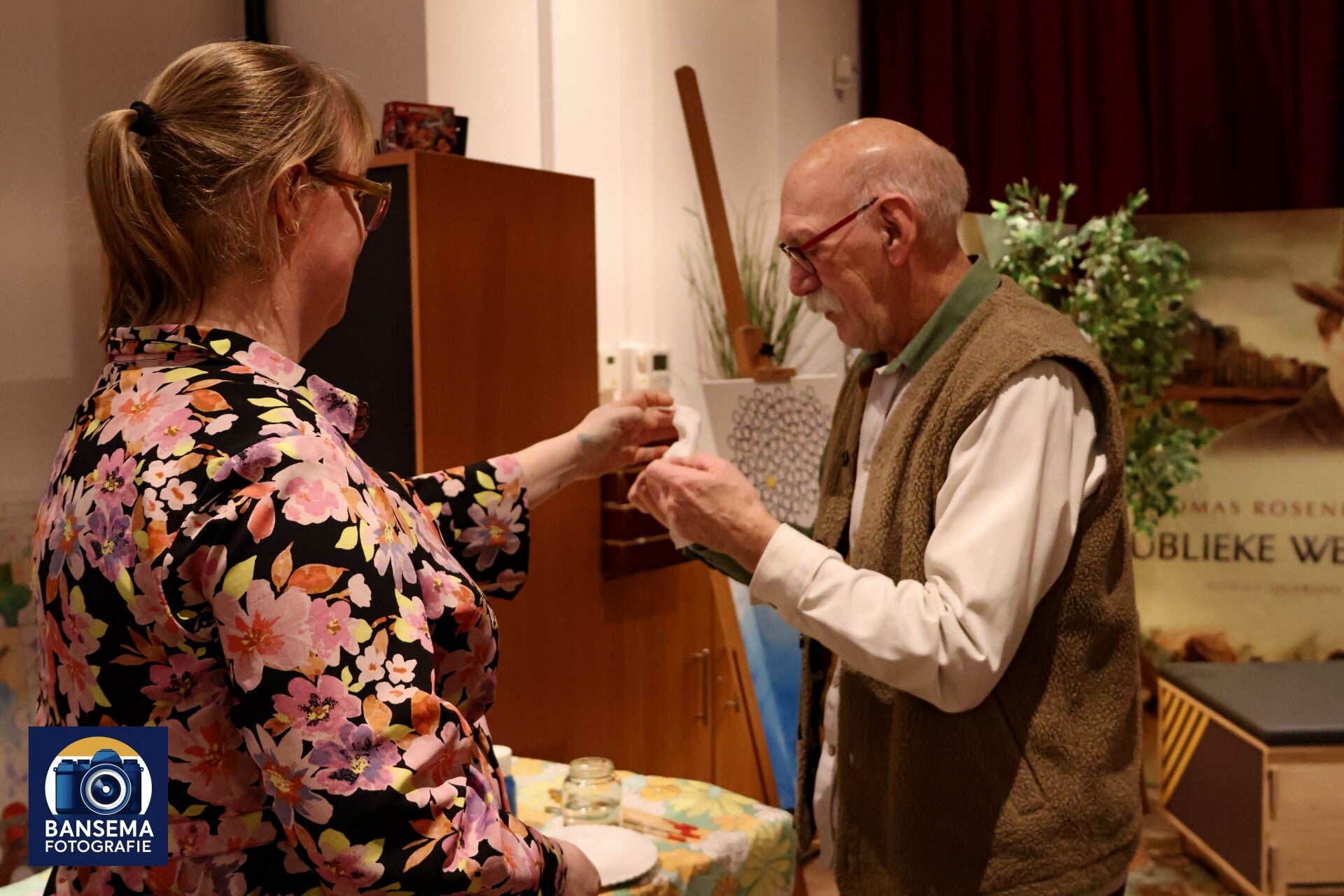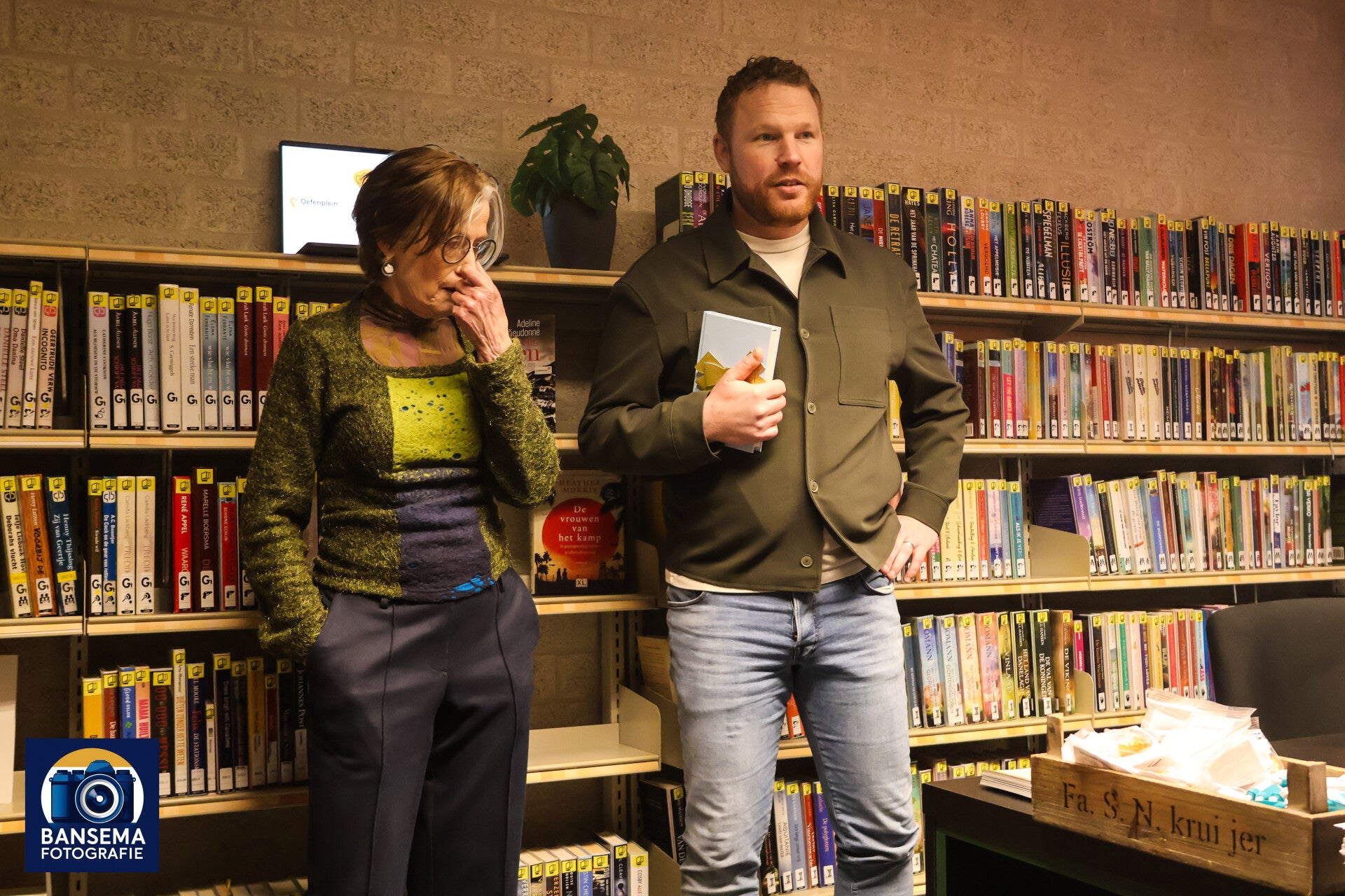 Symbolisch kregen ze een boek overhandigd door Alja Kiers, met daarin een plaat voor aan de muur van het dorpshuis, die de aanwezigheid van “de Bieb Dichtbij” markeert.
